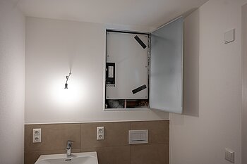 Dieser Maßgabe folgend kommt ein modular aufgebautes Lüftungssystem zum Einsatz: Das PluggPlan von Pluggit, das speziell für kleinere und mittlere Wohneinheiten konzipiert wurde. Die einheitszentralen Geräte lassen sich flexibel und zeitsparend über eine Vorwandinstallation im WC integrieren – ideal für Gebäude mit kleinen Wohneinheiten. Dabei erhält jede Wohnung ein eigenes System, das über eine unauffällige Revisionsklappe zu warten ist und sich harmonisch in die Badgestaltung einfügt.