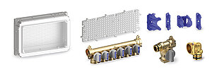 - Kugelhähne und Unterputz-Zählersets für die Wasserverteilung.