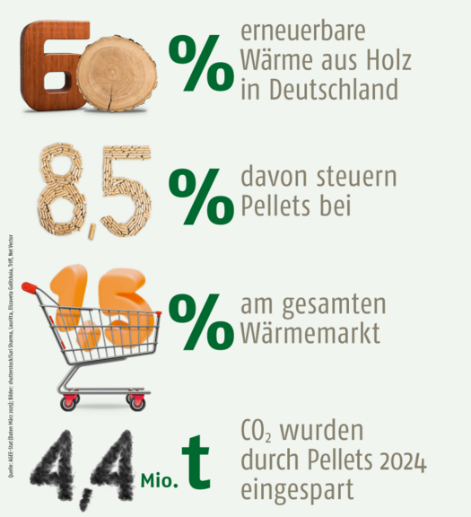 Ohne Holzenergie hätte Deutschland ca. 60 Prozent weniger Erneuerbare Wärme! Biogene Festbrennstoffe, darunter vor allem Holz, tragen zu einem großen Teil zum klimafreundlichen Heizen bei.