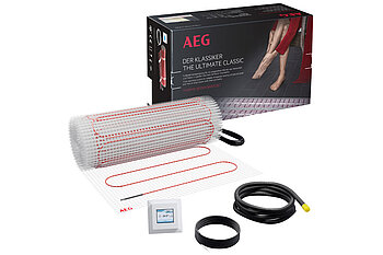 Die THERMO BODEN-Heizmatten gibt es in verschiedenen Ausführungen und Größen für Wohnräume, Bäder, Wellness- und Duschbereiche. AEG Haustechnik bietet auch THERMO BODEN-Sets als Komplettpaket an. Der Vorteil liegt auf der Hand: Alles passt perfekt zusammen und wird rasch und zuverlässig geliefert. Der THERMO BODEN wird über den im AEG Fußbodentemperaturregler mit Fußbodenfühler gesteuert – beides ist im Set enthalten. Einschalten ist sowohl manuell als auch zeitgesteuert möglich – dann ist der Fußboden schon warm, wenn der erste Bewohner beispielsweise ins Bad geht. Die AEG THERMO BODEN-Sets beinhalten die Elektro-Heizmatte (160 oder 200 W/m² Heizleistung) in entsprechender Größe (wählbar 1 – 8 m²) und Verlegebreite (wählbar 30 oder 50 cm) und mit Anschlusskabel, Fußbodenfühler, Bodenhülse sowie Verlege- und Bedienungsanleitung.