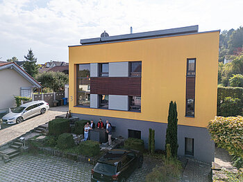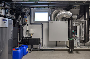 „Im nächsten Schritt waren wir dann auf der Suche nach einem älteren Gebäude für eine Sanierung. Dort liegt großes Potenzial, aber wir müssen wissen, ob unser System auch ohne die ganze moderne Technik eines Neubaus funktioniert“, beschreibt Manfred Gerngroß. Geworden ist es schließlich das Haus von Jürgen Leppigs Bruder – Rudolf Leppig. Der Vorteil: Die Häuser haben nicht nur eine ähnliche Größe und Nutzung, sondern stehen auch im gleichen Ort. Es herrschen identisches Wetter und Klima für Neu- und Altbau. Für das Sanierungsgebäude reichte auch eine Belaria pro comfort (8) von Hoval aus, um die bisherige Gasheizung zu ersetzen, die eine Fußbodenheizung versorgte. Das sind optimale Voraussetzungen für repräsentative, belastbare Ergebnisse.
