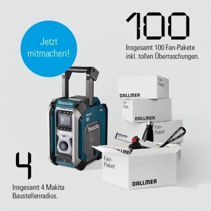 Unter allen Teilnehmern verlosen wir ein Makita-Baustellenradio sowie 25 exklusive Dallmer Fan-Pakete. Jetzt mitmachen und bei der vierten und letzten Ziehung in diesem Jahr dabei sein: am 30. November 2025.