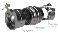 Ebenso praxisnah ist der Filteraufsatz für Präzisionszugbegrenzer. Bei Biomassekesseln kann es in der Anfahrphase zu Asche- und Rußaustrag kommen. Der Filteraufsatz minimiert diese Belastung und sorgt