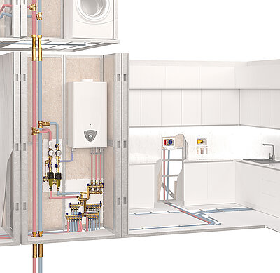 Alle Komponenten sind DVGW-zertifiziert, kompakt und für die Offsite-Vorfertigung optimiert, was schnelle, sichere und reproduzierbare Installationen gewährleistet.