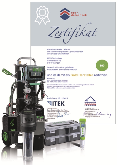 UWS Technologie erneut als „Gold-Hersteller“ bei Open Datacheck ausgezeichnet – 100 von 100 Punkten