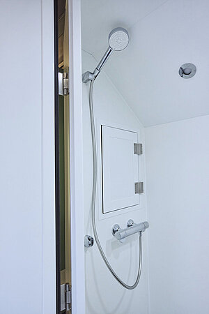 Der neue Bus wartet mit umfangreichen technischen Neuerungen auf und ist auf Langlebigkeit, Verlässlichkeit und Wartungsfreundlichkeit ausgerichtet. Geräumige Kabinen mit hochwertigen Waschtischen und Waschtischarmaturen sowie Duscharmaturen und Handbrausen schaffen optimale Bedingungen. Ein Waschtisch ist unterfahrbar und somit barrierearm. Die Waschtischtisch- und Duscharmaturen entsprechen den hohen Anforderungen an Hygiene und Sicherheit, wie sie im Health-Care-Sektor unverzichtbar sind.