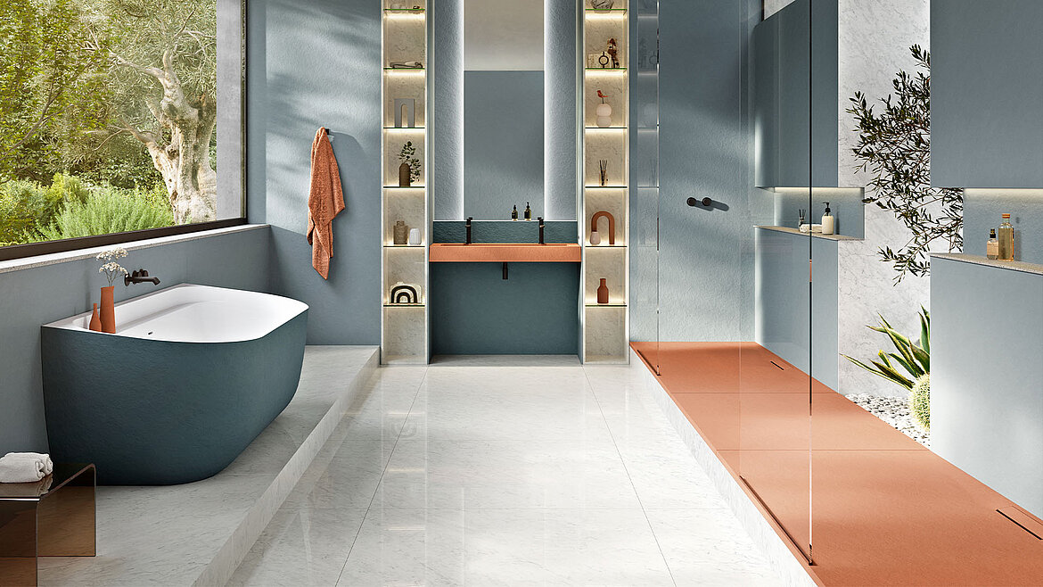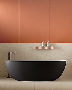 Die Badewannen von Acquabella verbinden technische Eigenschaften mit gestalterischer Freiheit. Unterschiedliche Texturen und Farbvarianten, ein- oder zweifarbig, ermöglichen eine individuelle Anpassung an verschiedenste Badkonzepte. Als Sortimentserweiterung fügen sich die Badewannen harmonisch in das Gesamtportfolio ein: Design, Materialität, Größenvielfalt und Individualisierung stammen aus einer Hand – alles aus einem Guss.