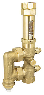 Eine schnelle Sichtkontrolle oder Überwachung der Erstbefüllung ermöglicht der Durchflussmesser und zur Kontrolle des Anlagendrucks kann ein optionales Manometer je nach Einbaulage von beiden Seiten montiert werden.