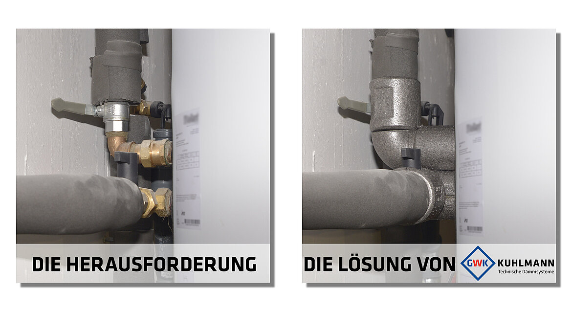 Das Baukastensystem der EPP-Serie von GWK Kuhlmann bietet unkomplizierte Lösungen für die Dämmung. Bei täglichen Arbeiten, wie Kesselumstellungen oder der Montage von Heizungsanlagen, trifft man häufig auf ungedämmte Ventile und Anschlüsse. Mit minimalem Aufwand kann die fehlende Dämmung direkt vor Ort ergänzt werden. Dank der Dämmboxen für Kugelhähne und Leitungen spart der Anlagenbetreiber, besonders angesichts gestiegener Kosten, einiges an Energie und Geld. Die Kombination einzelner Bauteile ermöglicht eine flexible Lösung für die meisten Installationssituationen.