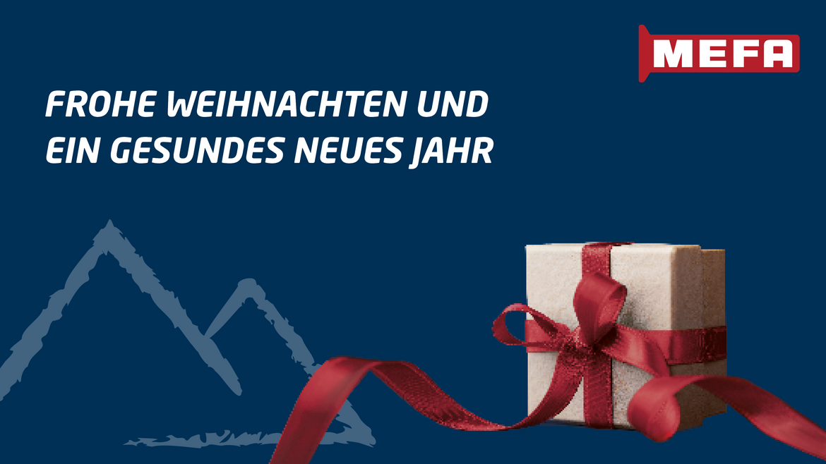 MEFA hat vom 20.12.2024 bis einschließlich 06.01.2025 Betriebsruhe. Der letzte Versand findet am 18.12. statt und der erste Versandtag im neuen Jahr ist der 07.01.2025. Bitte beachten Sie auch, dass unser Wareneingang ebenfalls für diesen Zeitraum geschlossen ist. Gerne sind wir bis einschließlich Donnerstag, den 19.12.2024, für Sie da.