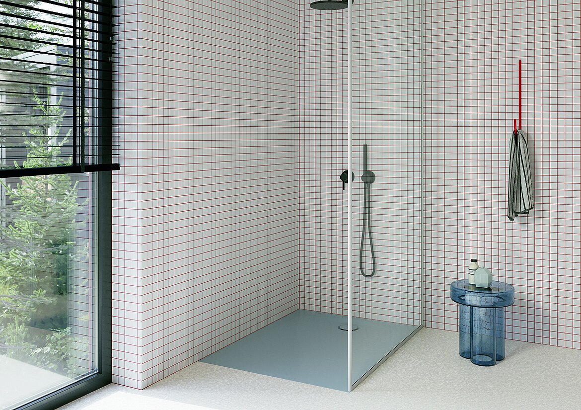 Ein besonderer Nutzen liegt in der durchdachten Geometrie der Duschfläche. Sie führt das Wasser auch bei der extrem flachen