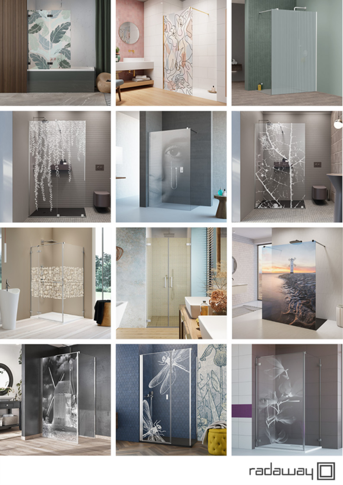 Der Digitaldruck von Radaway macht es möglich, die Duschabtrennungen und Badewannenaufsätze mit Aufdrucken aus Keramikfarbe zu veredeln. Die wärmehärtende Keramikfarbe wird mithilfe eines speziellen Digitaldruckers auf das Glas aufgetragen und während des Härtungsprozesses in die Glasoberfläche eingebrannt. Dieses Verfahren macht das Motiv abriebfest und widerstandsfähig. Die Farbqualität bleibt somit auch im Laufe der Zeit intensiv.