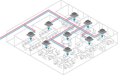 Die Kälte- und Wärmeverteilung erfolgt über individuell einstellbare Inneneinheiten. Diese sind