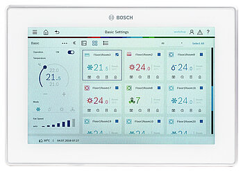Für die komfortable Bedienung des Systems stehen unterschiedliche Regelsysteme zur Verfügung: Kabelgebundene Einzelregler als Bedieneinheit, kabellose Infrarot-Einzelregler als Fernbedienung sowie ein Zentralregler mit Touch-Display inklusive Fernsteuerung über LAN/WAN1 sowie integriertem Modbus-TCP/IP. Das zentral geregelte Klimamanagement bietet hohen, intuitiven Bedienkomfort über einen 10,1-Zoll-Touchscreen mit übersichtlicher Benutzeroberfläche.