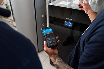 Das Zusammenspiel der Komponenten zahlt sich aus: Im Sommer ist der Haushalt nahezu autark. Die Photovoltaikanlage liefert bis zu 70 kWh pro Tag und senkt so die Betriebskosten deutlich. Dank des Funkmoduls MX3000 und der App MyEnergyMaster von Buderus behält Familie Stroh jederzeit den Überblick. So sind Energieflüsse, Eigenverbrauch und Verbrauchswerte jederzeit einsehbar und die Hausbesitzer können ihr Heizsystem komfortabel und individuell per Smartphone regeln. Außerdem ist die Wärmepumpe serienmäßig mit der Regelung Logamatic EMS plus ausgestattet. Sie passt die Heizleistung automatisch dem tatsächlichen Bedarf an und steigert so die Effizienz.
