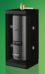 Pufferspeicher in Wärmepumpensystemen dienen dazu, überschüssige Wärme zu speichern und bei Bedarf an das Heizungssystem abzugeben. Mit dem Pufferspeicher/Hydraulische Weiche der Serie 5485 hat Caleffi eine solche Lösung im Programm. Die Serie übernimmt in Wärmepumpenanlagen die Funktion der hydraulischen Weiche und der Heizkreisverteilung der Heizkreise. Es gibt sie in einer Version mit 15-30 Liter Fassungsvermögen (1“ F-Anschlüsse) und mit 50 Liter (Anschluss 1 1/4“ IG). Der Korpus aus hochwertigem Edelstahl ist komplett isoliert.