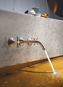 Tim Bohmann: „Das Portfolio von Dornbracht umfasst metallische Oberflächen in Chrom und Platin, die jeweils in gebürsteter und glänzender Variante erhältlich sind. Wie sämtliche Finishes zeichnen sie sich durch Perfektion in allen Dimensionen aus und bereichern mit ihrer Farbtiefe, Intensität und Brillanz unterschiedlichste Badarchitekturen. Zugleich garantiert unsere präzise Fertigung mit einem hohen Anteil manueller Feinarbeit ihre Langlebigkeit und Beständigkeit. Die Farbfamilien reichen dabei von Metallic- bis hin zu Goldtönen. Individuelle Finishes können wir sogar ab Losgröße eins realisieren. Dieses weitreichende Spektrum verfügbarer Oberflächen eröffnet unseren Kundinnen und Kunden große Freiheiten beim Umsetzen persönlicher Visionen fürs eigene Bad.“