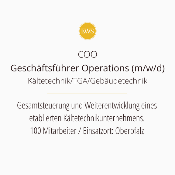 Ewald W. Schneider® sucht COO – Geschäftsführer Operations (m/w/d) Kältetechnik/TGA/Gebäudetechnik (EWS 1779)