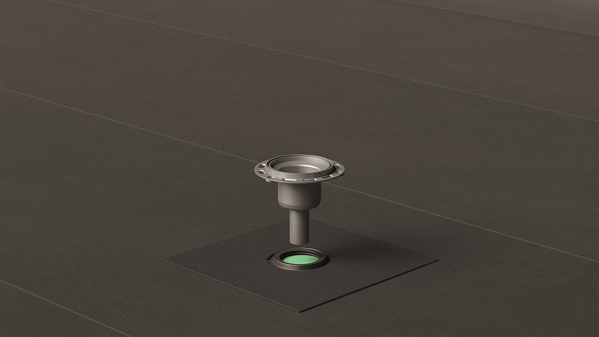 Weiterer Vorteil: Die Manschetten und Bodenabläufe werden erst dann installiert, wenn sie wirklich benötigt werden. Dies garantiert einen optimalen Schutz der Bauwerksabdichtung vor Verschmutzung und Beschädigung während der Bauphase. Zusätzlich werden Stolperkanten durch zu früh installierte Ablaufgehäuse vermieden. Die Dichtmanschetten sorgen gemäß DIN 18533 für eine zuverlässige Abdichtung gegen die aufsteigende Kapillarfeuchtigkeit. Während des Aufschweißens der Bitumenmanschette schützt der Bauschutzdeckel die Lippendichtung und das Abwasserrohr vor Hitzeeinwirkung und Verschmutzung. Auch nachträglich können Bodenabläufe ausgetauscht werden, ohne die Bauwerksabdichtung zu beschädigen.