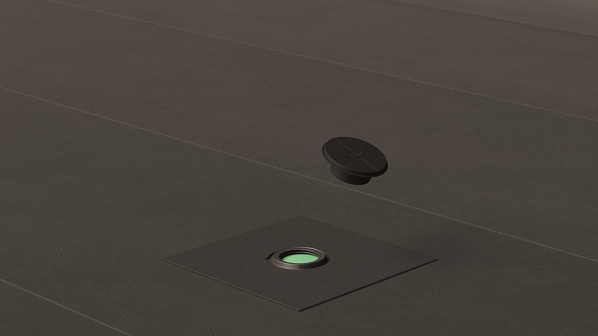 Durch die neuen Bitumenmanschetten von Dallmer müssen die Ablaufgehäuse nicht mehr in die Betonplatte eingearbeitet werden. Dadurch entfällt erhöhter Planungsaufwand und zusätzliche Arbeitsschritte wie Stemmarbeiten, das Einschalen von Aussparungen und das spätere Ausgießen. Zudem sind sie in wenigen Schritten montiert: Ein großes Plus ist die im Bauschutzdeckel integrierte Positionierhilfe. Sie ermöglicht eine einfache und schnelle Ausrichtung der montagefertigen Manschette an der Installationsstelle und definiert eine klare Trennung zwischen den ausführenden Gewerken. Durch die korrekte Auflage der Bitumenmanschette auf der Bodenplatte wird vermieden, dass Hohlräume innerhalb der Abdichtung entstehen. Der Ablaufkörper ist ebenfalls leicht zu installieren, da dieser direkt in das Abwasserrohr eingesteckt wird. Zudem überzeugt das System durch eine flexible Höhenausrichtung und einen geringen Aufbau.