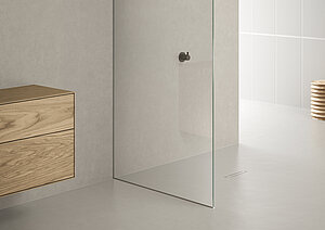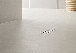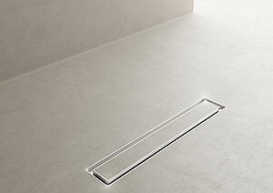 Anforderungen von fugenlosen dünnschichtigen Spachtelsystemen abgestimmt ist. Sie besticht durch ihr minimalistisches, flaches Design, das sich nahtlos in dünnschichtige Spachtelböden einfügt und fugenlose, barrierefreie Duschflächen ermöglicht. Ihr dezentes Erscheinungsbild und die einfache Reinigung erhöhen den Komfort für die Nutzer. Die Duschrinne ist auch ideal für kleinere Bäder geeignet, die durch das fugenlose Design größer und weitläufiger wirken.