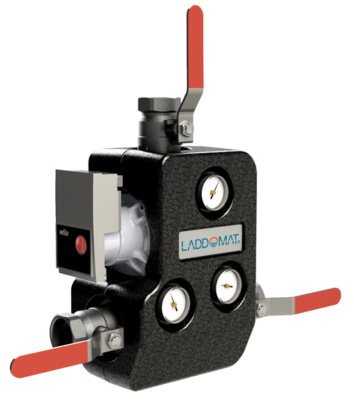 Wenn der Kessel startet, sorgt die Ladeeinheit für eine kesselinterne Zirkulation des Wassers, so dass es schnell die Arbeitstemperatur erreicht wird und mit der Erwärmung des Pufferspeichers begonnen werden kann. Danach wird heißes Wasser langsam und kontrolliert zum Oberteil des Pufferspeichers gepumpt. Im Ergebnis dieses Vorgangs steht eine optimale Schichtung. Zudem kühlt der Laddomat den Kessel mit vorgewärmten Rücklaufwasser: Warmes Wasser aus dem Rücklauf wird mit etwas kaltem Wasser aus dem Rücklauf des Pufferspeichers vermischt.