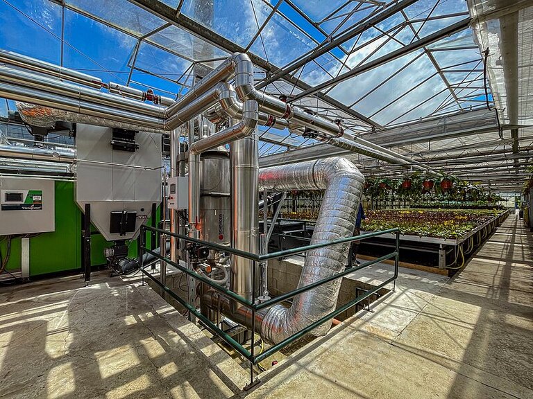 Mit diesem Konzept wurde der fossile Heizanteil 2023 komplett aufgegeben. Stattdessen setzt Familie Weilbrenner für die 5.500 m2 messende Gewächshausfläche auf Hackgut aus der Region und eine möglichst energiesparende, umweltschonende Wärmeerzeugung. So steht z. B. der Heizkessel in einem Gewächshaus, um die Abwärme zu nutzen.