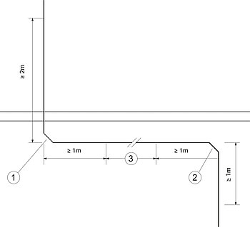 - ≥ 2m vor dem zulaufseitigen Bogen;