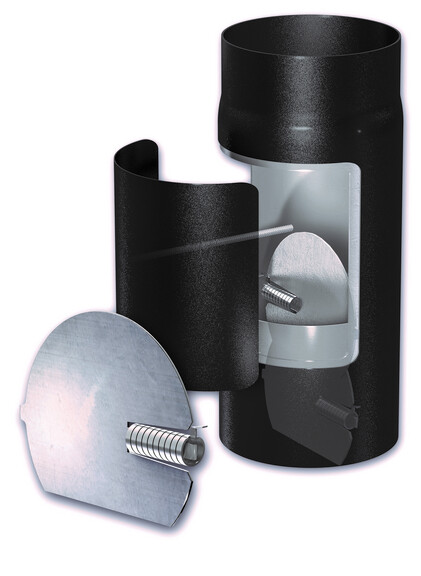 Das 350 mm lange Rohrelement mit den eingebauten Drosselklappen wird direkt hinter dem Abgasstutzen montiert, wahlweise senkrecht, waagrecht oder schräg. Der Zugbegrenzer lässt sich bei allen Naturzuganwendungen sowie bei Feuerungsanlagen mit Rauchgasgebläse einsetzen. Da keine Nebenluft eingeleitet wird, erfolgt auch keine Rauchgasabkühlung.