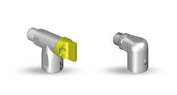 - R2 und R4-Kugelhähne: Gaskugelhähne für flexible Schläuche mit Bajonettverschluss, der schnelle und sichere Verbindungen und Trennungen des Schlauchs ermöglicht. Der R2-Kugelhahn ist für Außeninstallationen bis -20°C geeignet, während der R4 Temperaturen bis -40°C standhält.