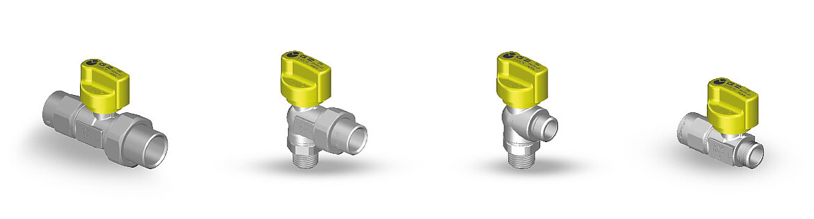 - G6-Kugelhähne: spezifisch für Einrohr-Gaszähler, erhältlich in gerader oder Eckversion und mit abschließbarem Hebel ausgestattet, um Manipulationen zu verhindern.