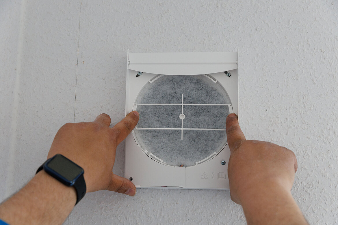 Der Pendellüfter x-well D13 lässt sich mit wenigen Handgriffen montieren und überzeugte damit die weisenburger bau GmbH: Wärmeübertrager und Ventilator in die vorgesehene Hülse einsetzen, Lüfter anschließen sowie Filter und Aufsatz aufsetzen. Fotos: Kermi GmbH