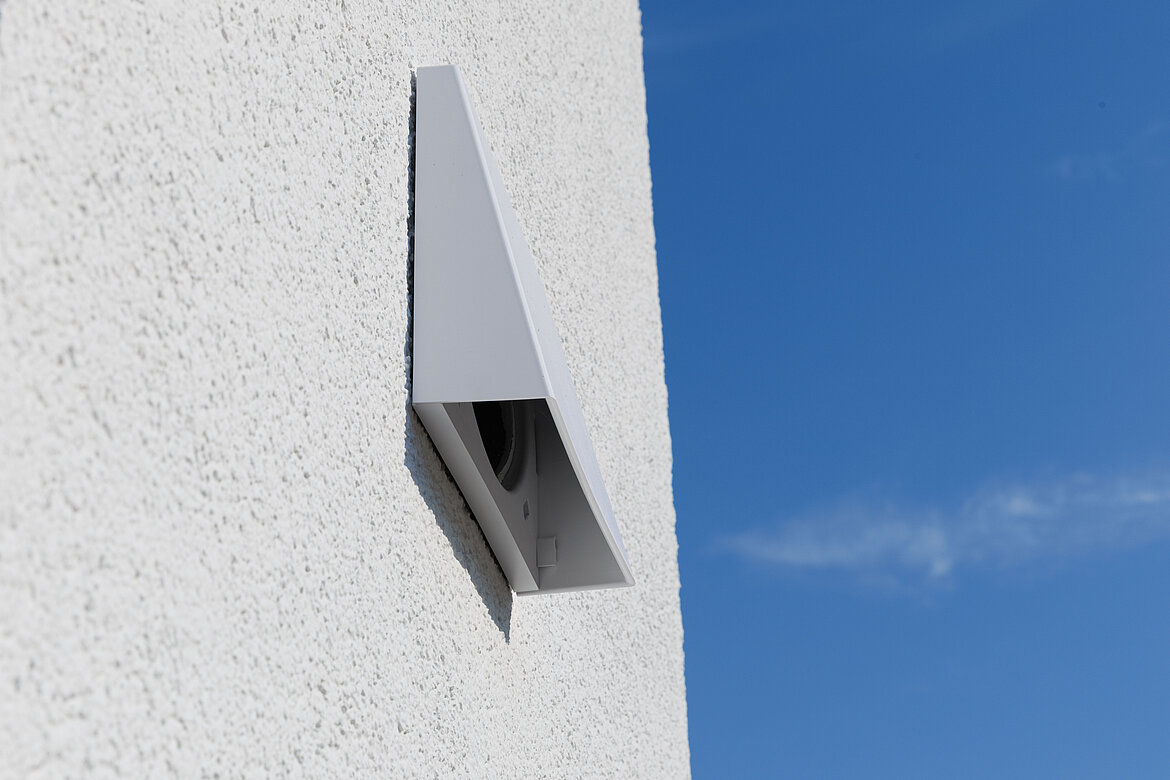 Der Pendellüfter x-well D13 von KERMI sorgt in den Doppelhaushälften der weisenburger bau GmbH für angenehmes Klima und eine positive Energiebilanz. Optisch fügt er sich dank moderner Innen- und Außenblenden harmonisch in die Fassade bzw. in die Raumgestaltung ein. Fotos: Kermi GmbH