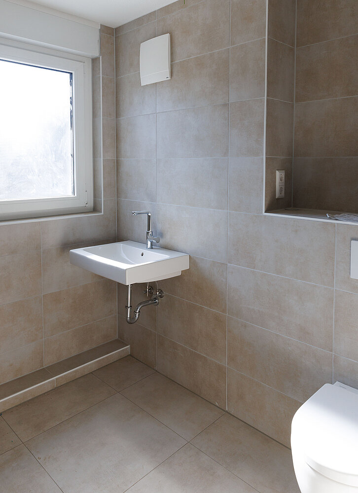Für eine einfache und effiziente Entlüftung in den Bädern der Doppelhaushälften von weisenburger sorgen die Kleinraumlüfter x-well A12 von KERMI. Fotos: Kermi GmbH
