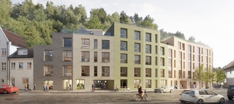 Das neue Seniorenquartier „Kupfereck“ in Landshut setzt neue Maßstäbe für altersgerechtes Wohnen etzen. Der 5-geschossige Neubau zwischen Stadtkern und Stadtrand wurde nach einem Entwurf von Felix+Jonas Architekten aus München errichtet und bietet auf 6.400 Quadratmetern Platz für 92 Seniorenapartments und eine Tagespflegeeinrichtung im Erdgeschoss. Über die gesamte Dachfläche erstreckt sich ein aufwändig begrünter Dachgarten, von dem Bewohner und Gäste einen spektakulären Rundblick über die Landshuter Altstadt mit Martinskirche bis zur Burg Trausnitz auf dem Landshuter Hausberg genießen können. Neben den sozialen Aspekten legte die Projektentwicklung großen Wert auf nachhaltiges Bauen und Betreiben. Das Gebäude wird nach KfW-Energieeffizienzklasse 40 NH realisiert und strebt Zertifizierungen mit dem DGNB-Siegel in Silber der Deutschen Gesellschaft für Nachhaltiges Bauen und dem QNG-Zertifikat (Qualitätssiegel Nachhaltiges Bauen) an. Fertigstellung und Bezug der Seniorenwohnanlage sind für das Frühjahr 2025 geplant.