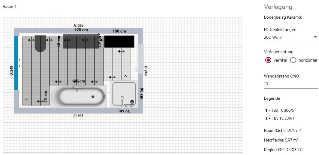 Die Software führt Anwender mit einer klar strukturierten Benutzerführung in nur drei Schritten zu einem vollständigen Verlegeplan. Das Ergebnis ist eine korrekt ausgelegte Lösung – inklusive Stückliste mit passendem AEG Heizmattenset, Komfortregler und erforderlichem Installationszubehör. Die intuitive Bedienung reduziert den Aufwand auf wenige Klicks und macht das Tool sowohl für die Angebotsphase als auch für die Ausführungsplanung attraktiv.