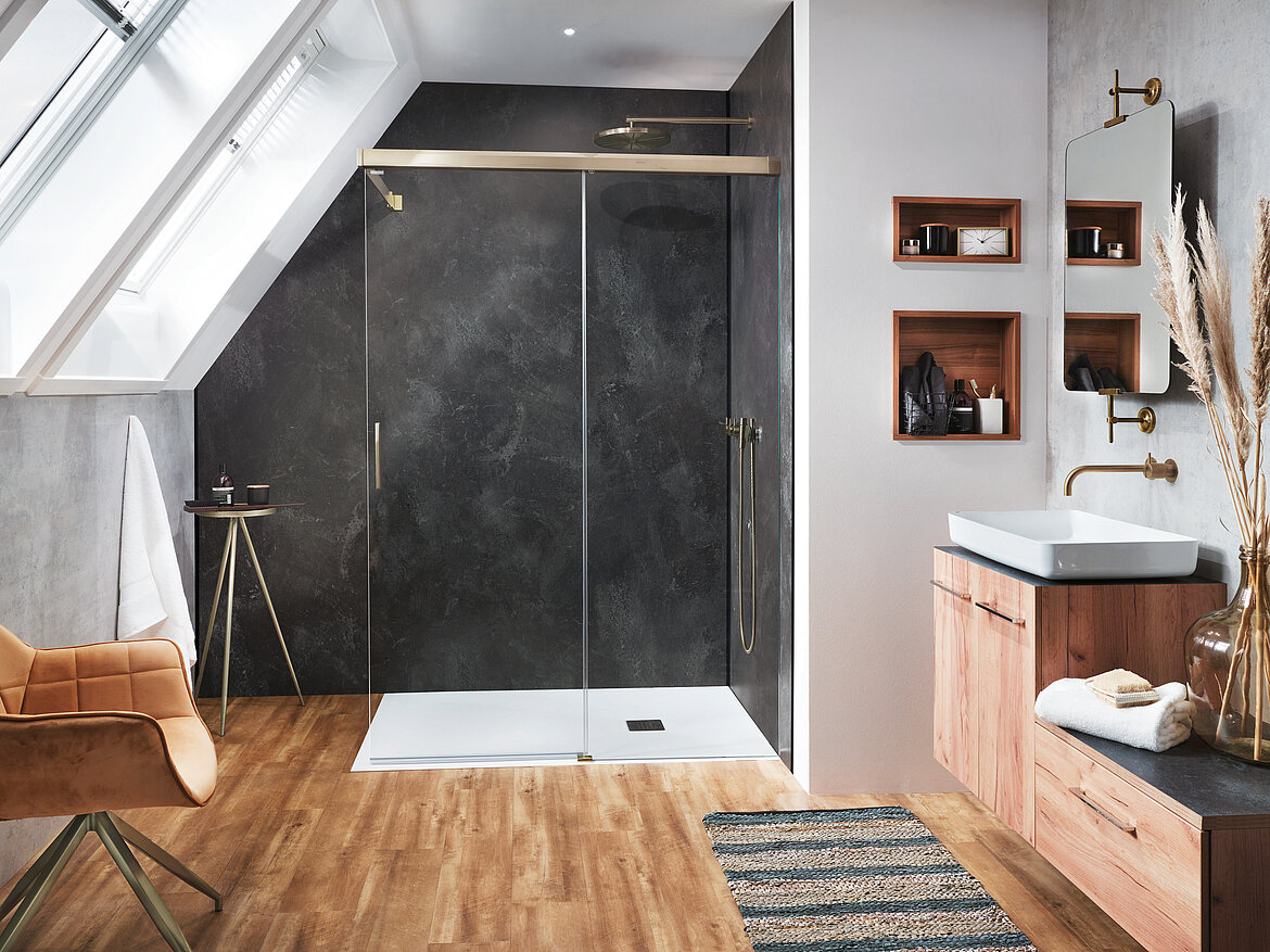Das System ist besonders für die Sanierung geeignet. Großformatige Wandpaneele ermöglichen eine schnelle und staubarme Umsetzung ohne klassische Fliesenarbeiten. Das reduziert den Montageaufwand und erhöht die Effizienz auf der Baustelle.