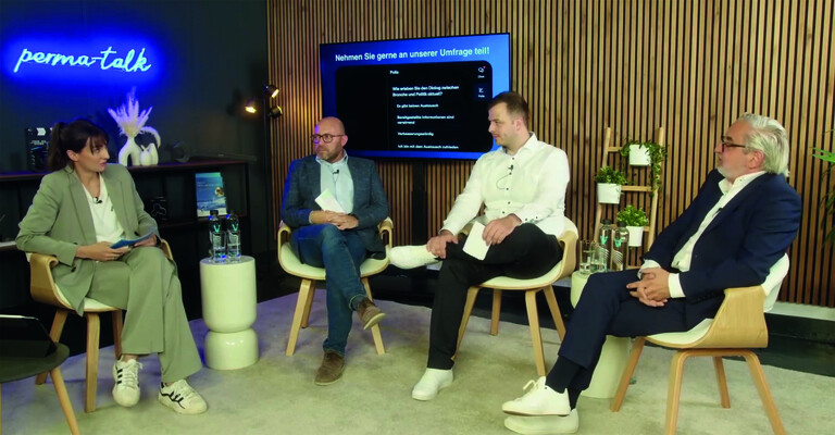 Am 17.09. ging die Auftaktsendung zum neuen Online-Format „perma-talk“ mit fachkundigen Gästen aus der SHK-Branche auf Sendung: José Lupion, Obermeister Innung SHK Stuttgart-Böblingen, als „Praktiker“ und „Stimme des Handwerks“, Valentin Ege von der Digital Building Industries AG als Digitalisierungs-Experte und perma-trade Geschäftsführer Michael Sautter als Vertreter von Herstellerseite sorgten für einen interessanten Live-Austausch rund ums GEG und beleuchteten die aktuelle Situation aus ihrer jeweiligen Perspektive. Der Fokus lag dabei auf Förderpolitik, Digitalisierung und kommunaler Wärmeplanung. Darüber hinaus äußerten sich auch Marc Biadacz, CDU-Bundestagsabgeordneter für den Kreis Böblingen, als Vertreter aus der Politik und Marktanalyst Hans-Arno Kloep von der Querschießer Unternehmensberatung via Videobotschaft mit ihren Einschätzungen zur aktuellen Lage.