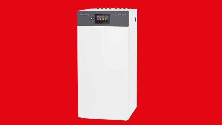 Das Innenmodul “Comfort” (Bild) steuert die gesamte Heizanlage zentral mit vielen Funktionen und mit einem Heizkreis. Es beinhaltet bereits die wichtigsten hydraulischen Komponenten sowie einen Warmwasserspeicher. Die sehr gute Energieeffizienz liegt bei einem SCOP von bis zu 4,76. Effektiver Betrieb bis minus 25 ºC Außentemperatur.
