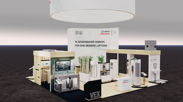 Auf dem gemeinschaftlichen Stand demonstrieren Aereco und EXHAUSTO ihre enge Zusammenarbeit, die es ermöglicht, maßgeschneiderte Lösungen für unterschiedliche Anforderungen im Neubau und bei Modernisierungen anzubieten. Aereco, dessen Hauptproduktionsstätten in Frankreich und Deutschland liegen, gehört seit Jahrzehnten zu den Top-Anbietern bedarfsgeführter Lüftungssysteme für Wohngebäude. EXHAUSTO, mit Hauptproduktions­standort in Dänemark, hat sich in der D/A/CH-Region als zuverlässiger Partner für Lüftungslösungen im Nichtwohnungsbau - von Bürogebäuden bis zu Schulen - etabliert.