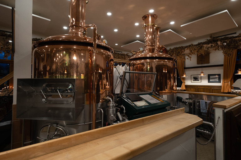 Die Verknüpfung der Komponenten gelang folgendermaßen: Die Pufferspeicher in der Technikzentrale werden in erster Priorität mit der Prozesswärme der Kühlanlagen und des Brauprozesses gespeist. Als Abnehmer im Haupthaus werden die komplette Gastronomie und die Tenne über eine Fußbodenheizung beheizt. Das warme Wasser der Hygienespeicher findet in der Gastronomie Verwendung, etwa in der Industriespülmaschine oder im normalen Wasserverbrauch. Hat die Prozesswärme die Hygienespeicher auf ein Temperaturniveau von ca. 45 °C gebracht, schaltet die Anlage automatisch auf den 2000-l-Pufferspeicher für die Fußbodenheizung. Sollte diese Prozesswärme nicht ausreichen, springen zusätzlich die beiden LWM 150 Duo an. Für Spitzenlasten kann der Gaskessel aktiviert werden.