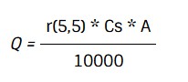 Der letzte Faktor A ist die Fläche. Für die Berechnung wird die im Grundriss projizierte Fläche angenommen, unabhängig davon, ob es sich um ein Satteldach oder ein Flachdach handelt. Die Einheit der Fläche beträgt Quadratmeter (m²), wodurch sich der Divisor von 10.000 durch die Einheiten Quadratmeter und Hektar (ha) erklärt. Mit Formel 1 wird die Regenwassermenge und damit die Dimensionierung der Regelentwässerung für die gesamte Dach- oder Teilfläche berechnet. Teilflächen werden bei unterschiedlichen Dachaufbauten oder variierender Höhe des Gründachaufbaus gebildet, da unterschiedliche Spitzenabflussbeiwerte Cs berücksichtigt werden müssen.
