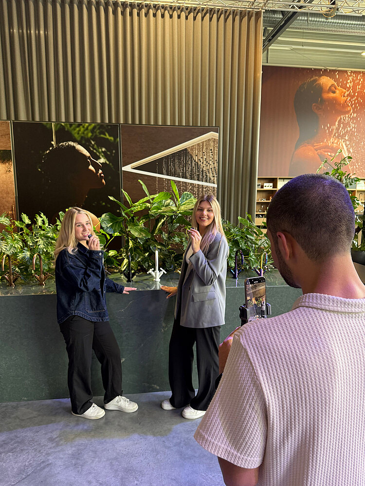 Entstanden ist das Projekt im Rahmen einer unternehmensweiten Initiative, bei der Auszubildende ihre Ideen vor der Geschäftsleitung und dem Management-Team pitchen. Die neuen Social-Media-Kanäle sind das Ergebnis eines besonders überzeugenden Konzepts. Die Planung und Umsetzung der Beiträge liegt in den Händen der Dornbracht-Auszubildenden Tamara Marin Gandul, Janka Dobers und Bilal Özkök. Sie organisieren und steuern den Content in enger Abstimmung mit der Personal- und Marketing-Abteilung des Unternehmens, sind aber auch vor der Kamera aktiv. Tamara Marin Gandul: „Bei uns steht das Team im Vordergrund. Uns geht es nicht um Hochglanz-Inszenierungen, sondern um echte Einblicke in unseren Arbeitsalltag, ehrliche Geschichten und die Menschen, die Dornbracht so besonders machen.“