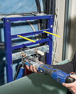 Die seitlich angesetzte, laterale Verpressung erleichterte die Montage auch in beengten Bereichen wie Schächten oder über abgehängten Decken. Zusätzlich sparte der Entfall von Kalibrieren und Entgraten beim Ablängen wertvolle Zeit.