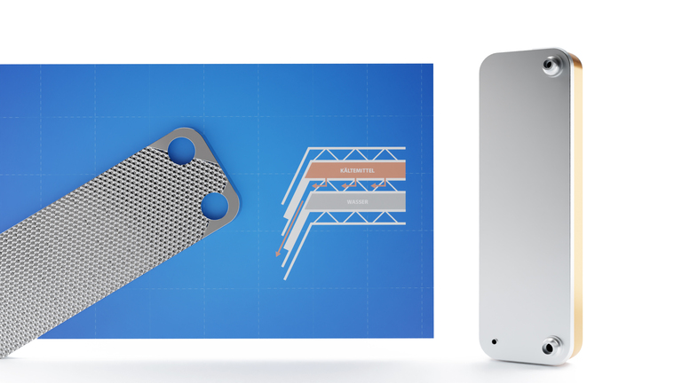 Ein Wärmetauscher ist das zentrale Bauteil jeder Wärmepumpe. Er überträgt Wärme vom Kältemittel auf das Heizwasser, ohne dass sich die beiden Medien vermischen. Das Heizwasser durchströmt anschließend die Räume und erwärmt diese. Weil das Kältemittel während des Vorganges kondensiert, wird der Wärmetauscher auch als Kondensator bezeichnet.