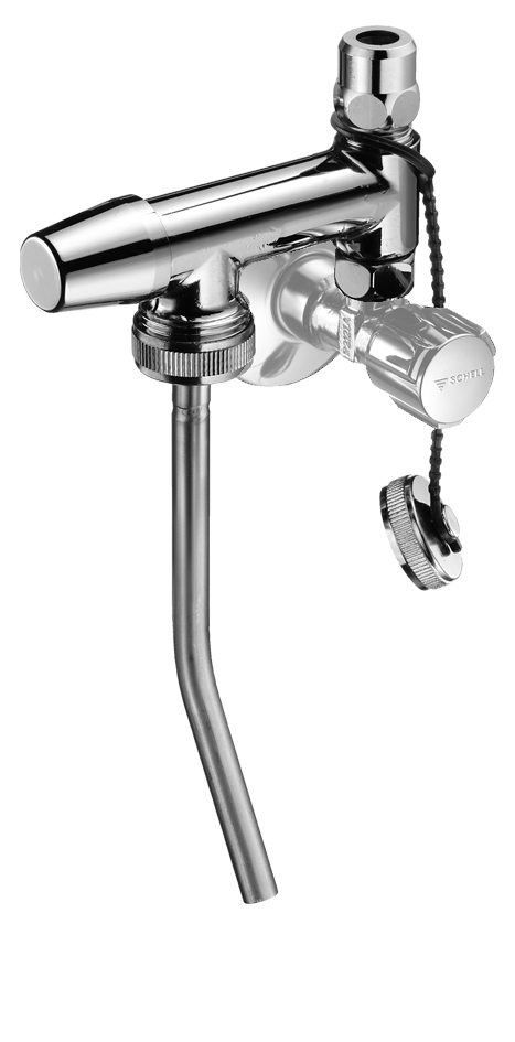 Rechts: Probennahmeventil PROBFIX mit Anschluss für Armaturenschläuche zum Nachrüsten zwischen Eckventil und Armatur. Zum Einbau ist lediglich das vorhandene Eckventil abzusperren. Bilder: SCHELL