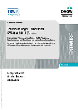 Das DVGW W 551-1 (A) gilt als das wesentliche technische Regelwerk zur Vermeidung und Bewertung von Legionellen in Trinkwasserinstallationen. So stehen auch beim neuen