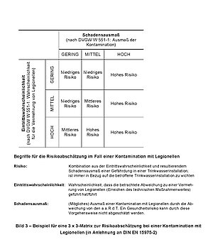 Stattdessen trifft es „Aussagen zu einer technisch-hygienischen Bewertung von Trinkwasserinstallationen und einer möglichen Kontamination mit Legionellen der Trinkwasserinstallation selbst. Die Wahrscheinlichkeit einer Infektion mit Legionellen wird dabei nicht berücksichtigt.“ Die Gründe liegen im Legionellen-Paradoxon: Weil Legionellen unterschiedlich gefährlich sein können, kommt es manchmal trotz hoher Konzentration an Legionellen nicht zu einer Erkrankung, während bei niedrigen Konzentrationen eine Infektion auftritt. Auch sind manche Menschen wie Männer über 55 Jahren stärker gefährdet.
