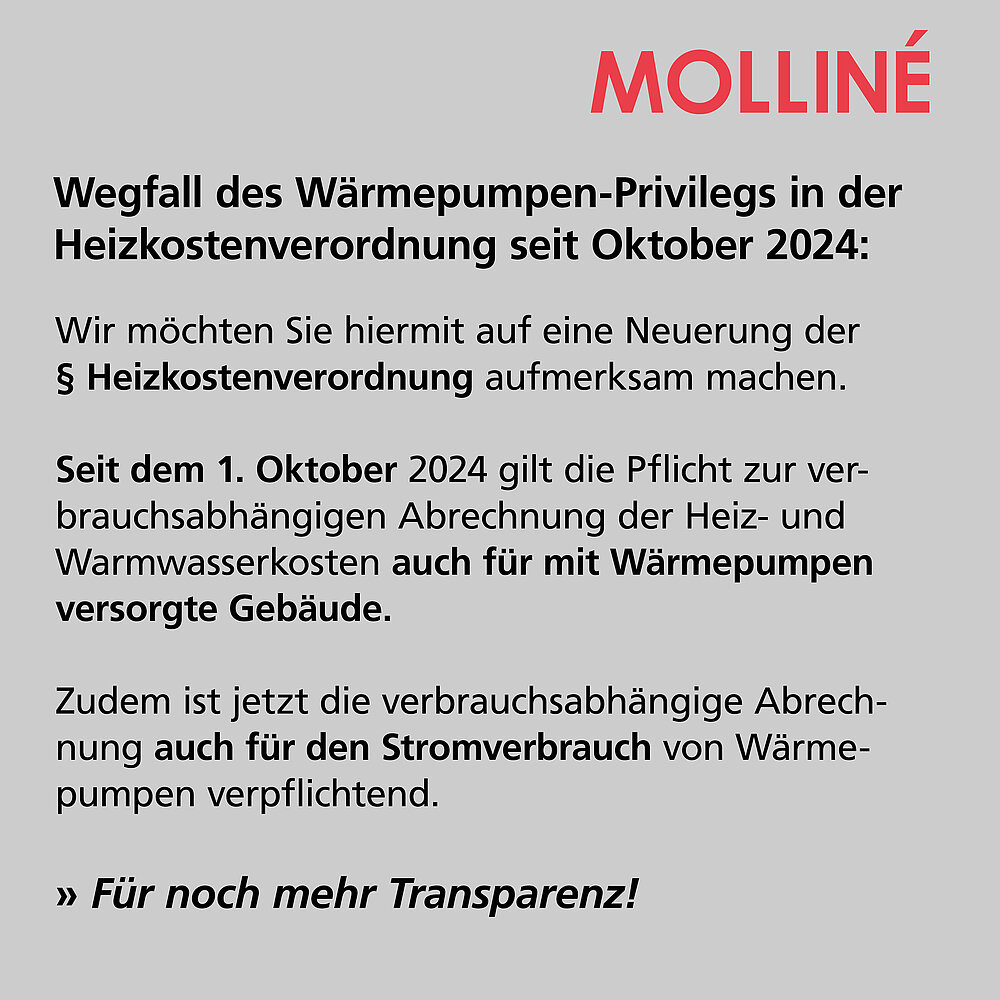 WDV Molliné: Wegfall des Wärmepumpen-Privilegs in der Heizkostenverordnung seit Oktober 2024