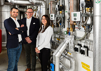 Auch die Inbetriebnahme durch die Experten der Matica AG lief reibungslos. Denn: Die Einstellung mehrerer Stationen in einer Kaskade ist überraschend einfach. Alle Parameter müssen nur an der Station mit Zirkulationspumpe eingestellt werden. Die Werte werden dann automatisch an die andere Station übertragen. Bei allen Taconova Frischwarmwasserstationen setzt eine elektronische Regelung die gewünschte Zapftemperatur in Steuerbefehle um. Für die Temperaturgenauigkeit sorgen Temperatursensoren und ein Durchflussmengensensor, die bei der Wasserentnahme laufend Austrittstemperatur und Volumenstrom erfassen. Die Regelung passt anhand dieser Daten permanent die Drehzahl der Primärkreispumpe an.